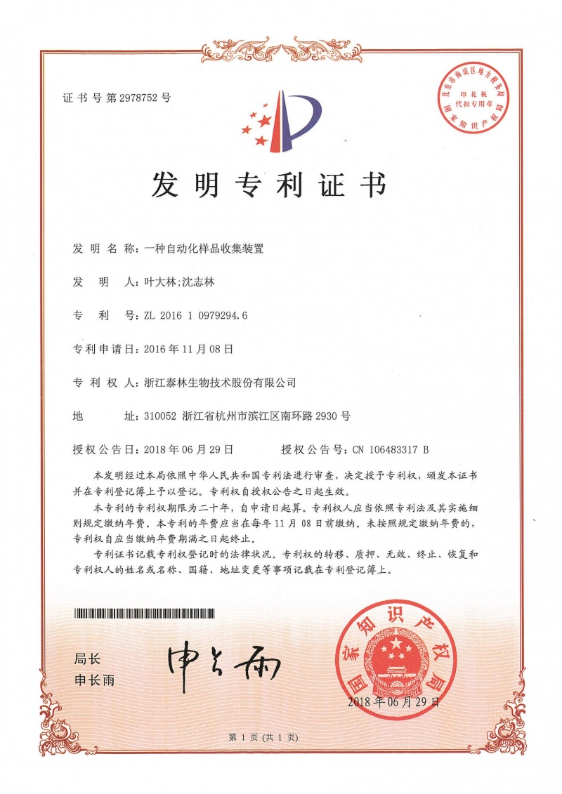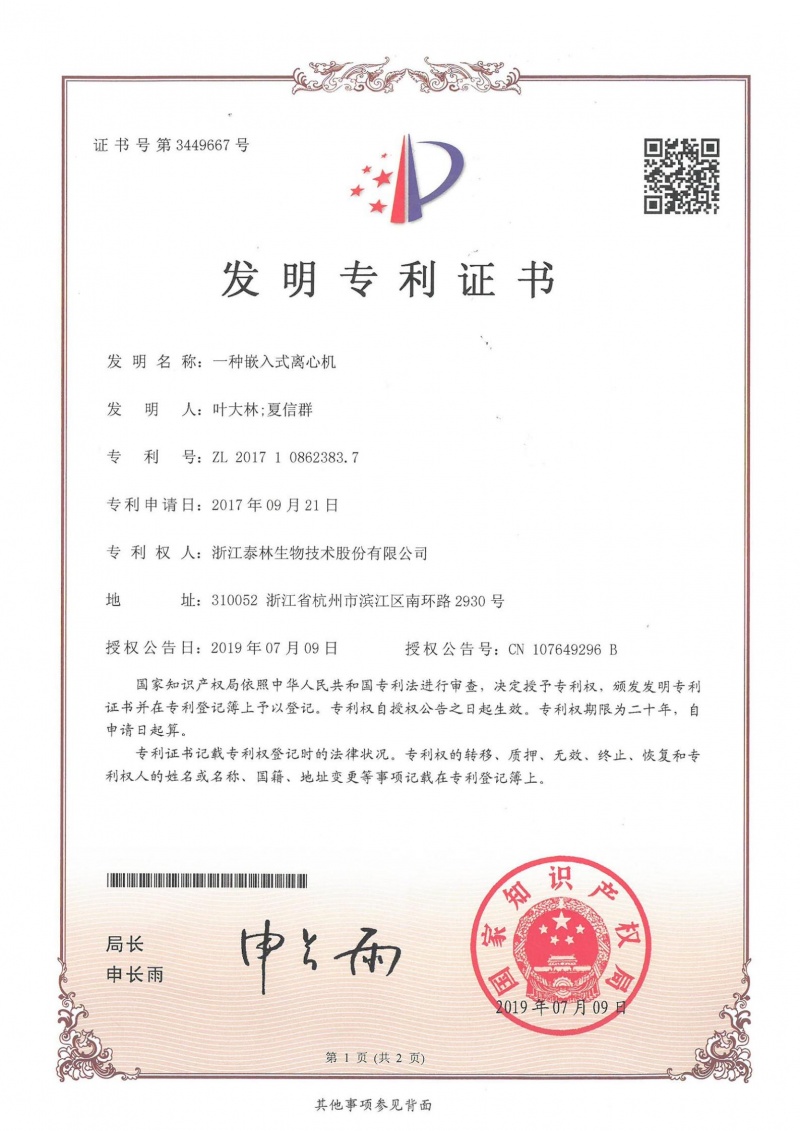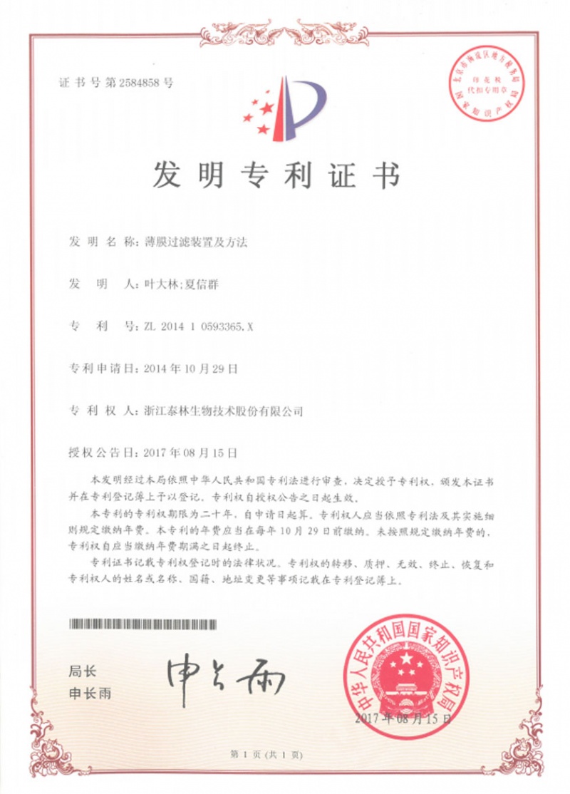 泰林生物拥有国家专利450余项,其中发明专利63项。