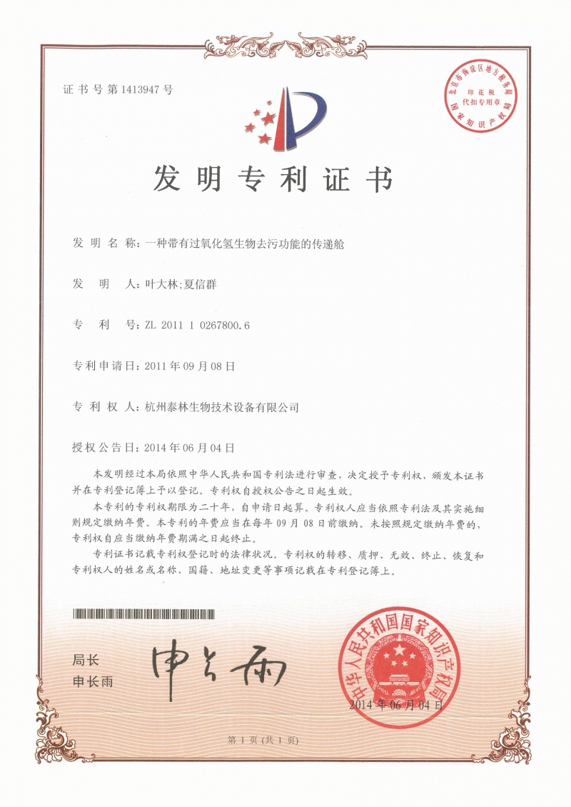 一种适用于密闭洁净环境中物品快速传出的装置ZL 2018 1 1213275.8 -