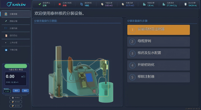 泰林正电子药物分装机具有自动分装核药功能,能根据临床需求活度剂量将母液分装至注射器,尤其适合正电子药物分装。