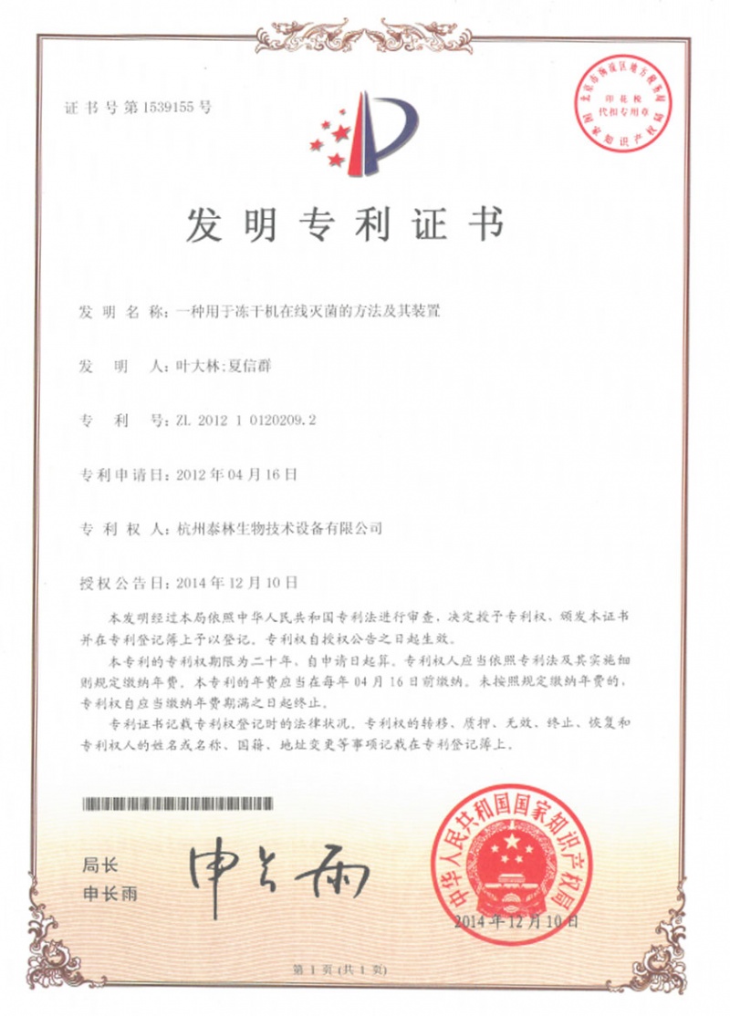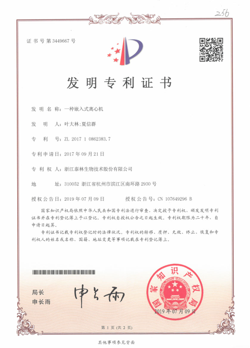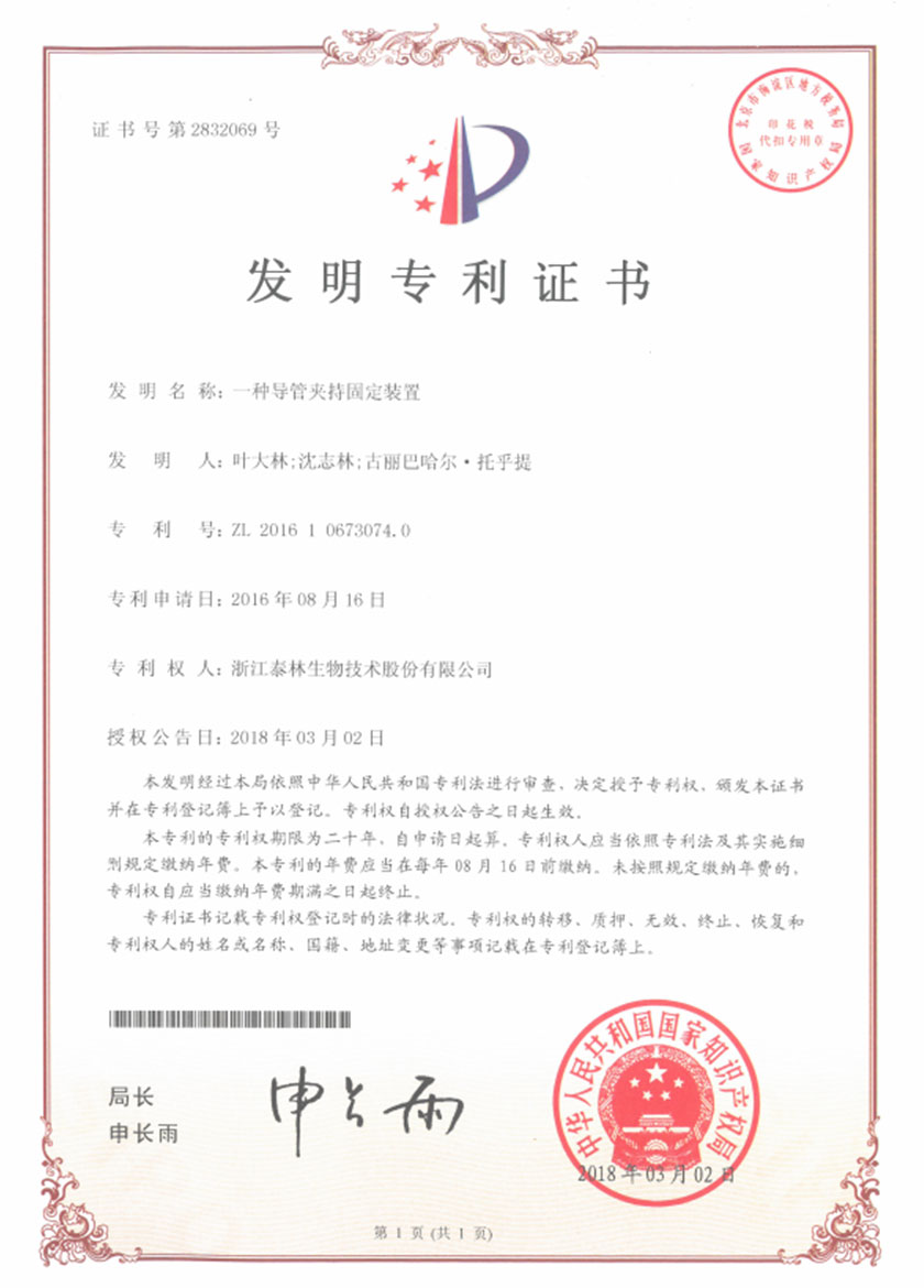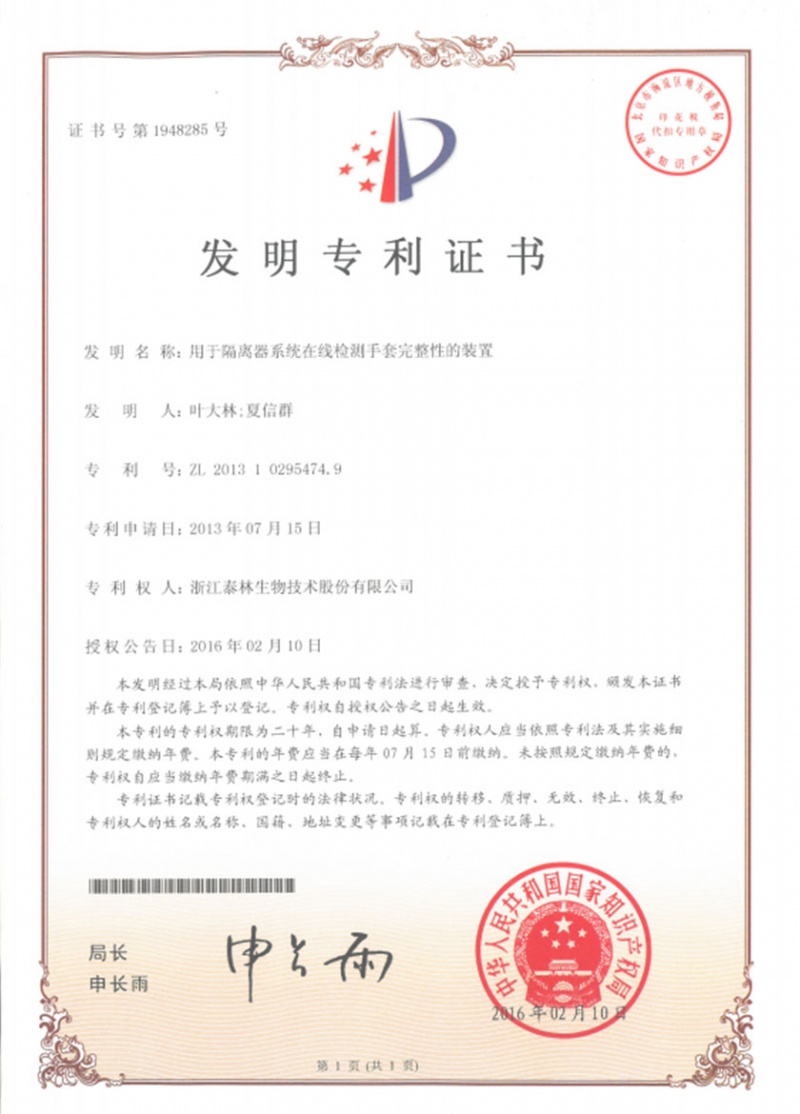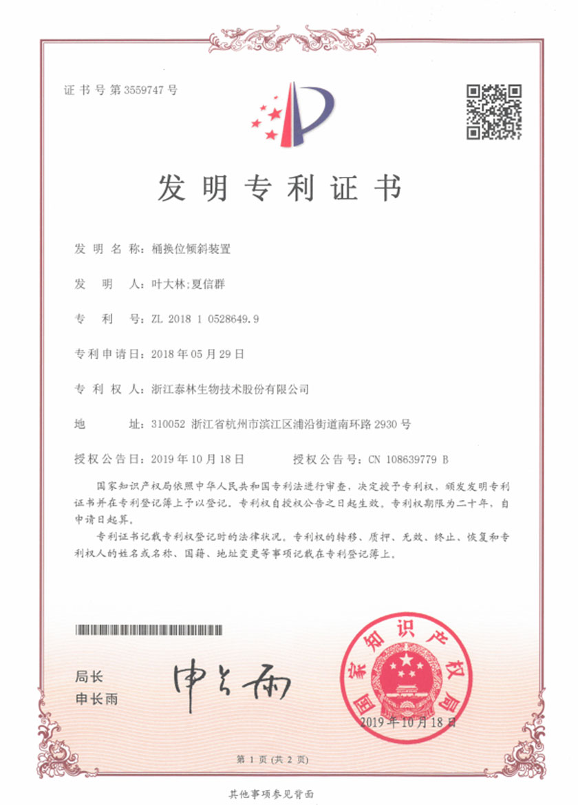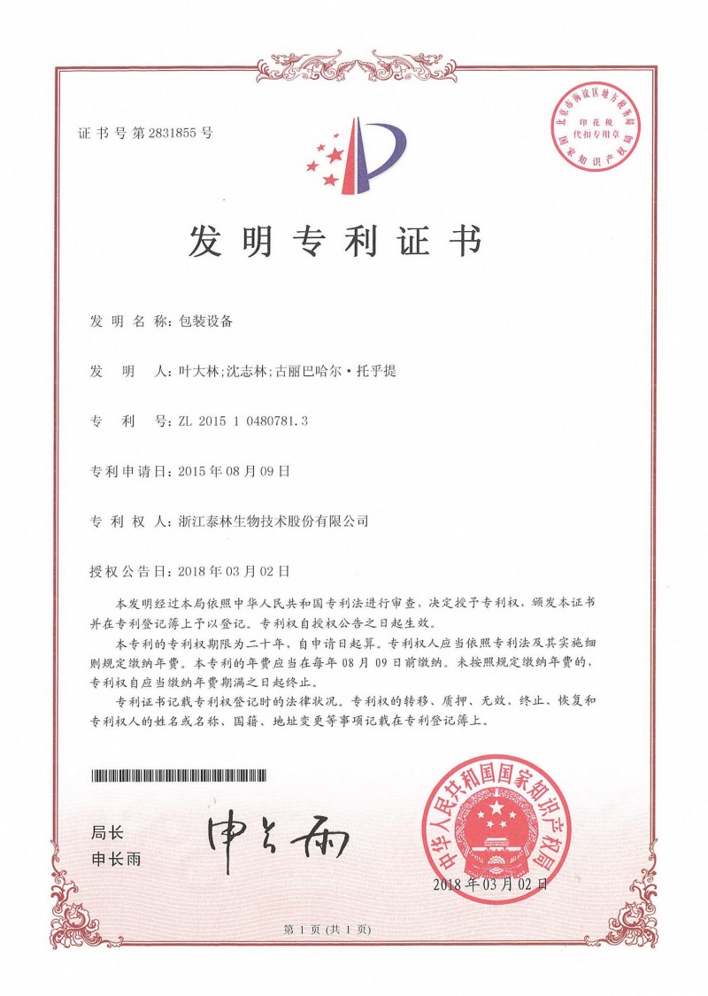 泰林生物拥有国家专利450余项,其中发明专利63项。